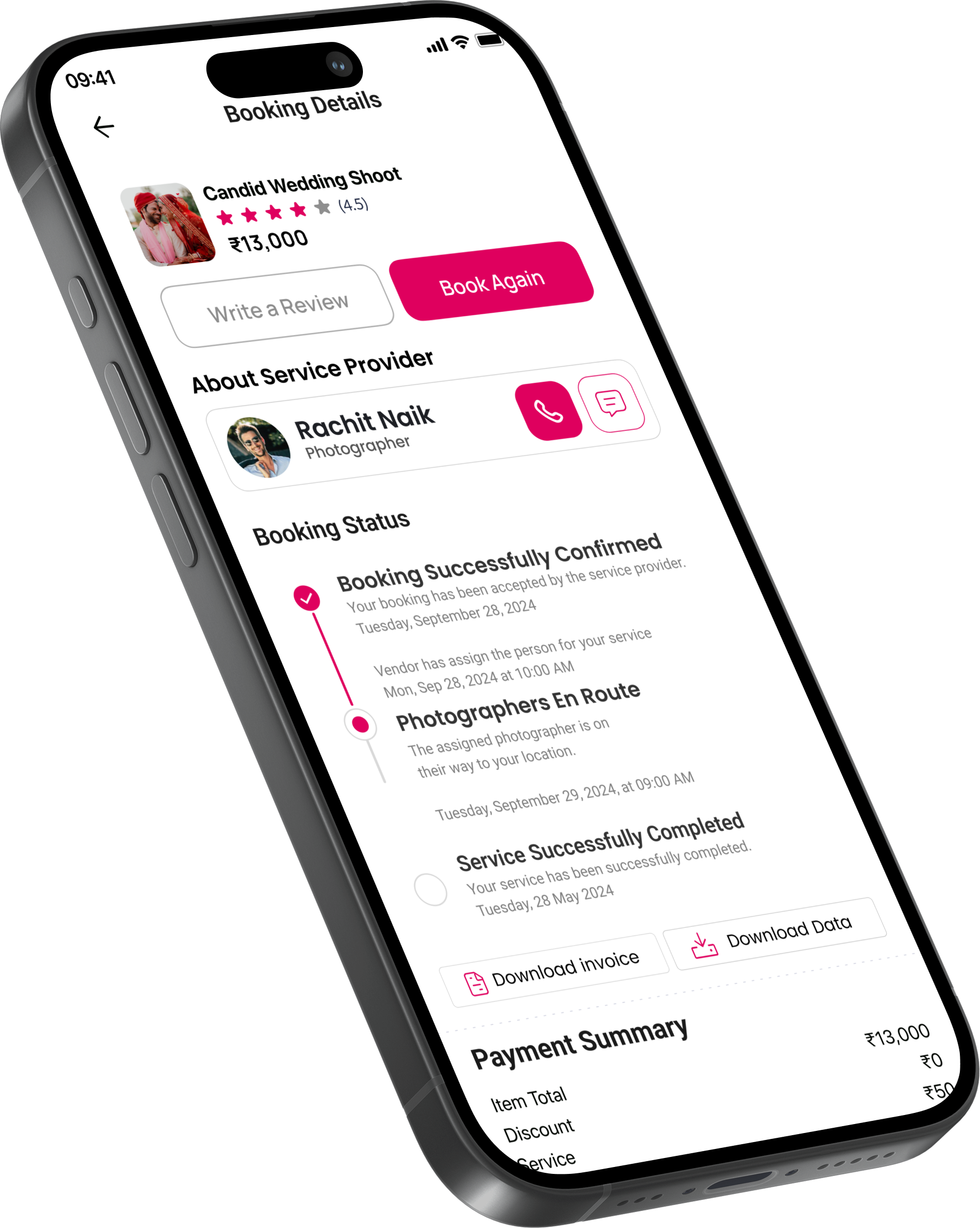 Make bookings, stay updated, and manage your event timeline seamlessly.